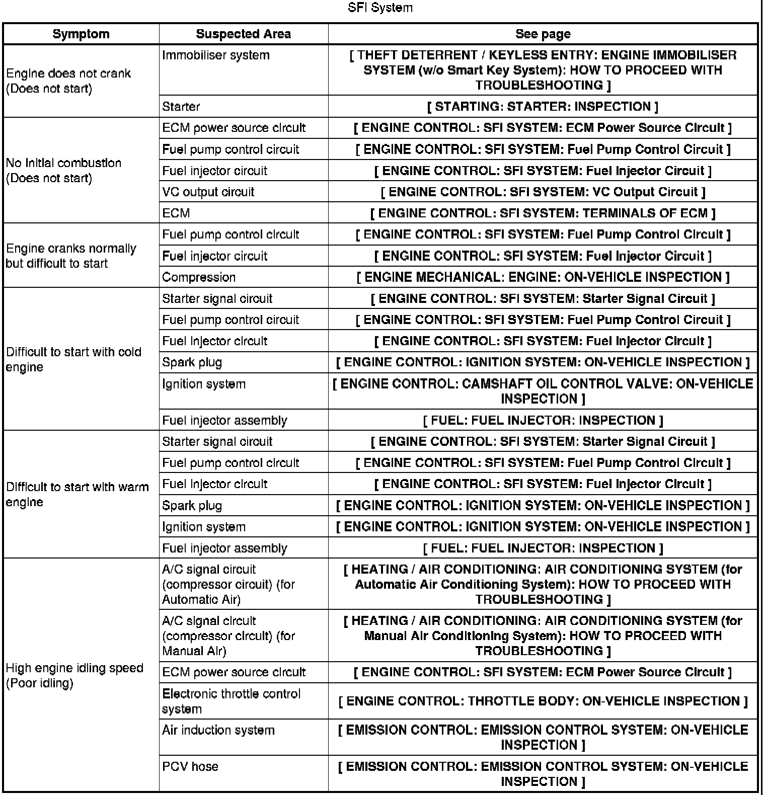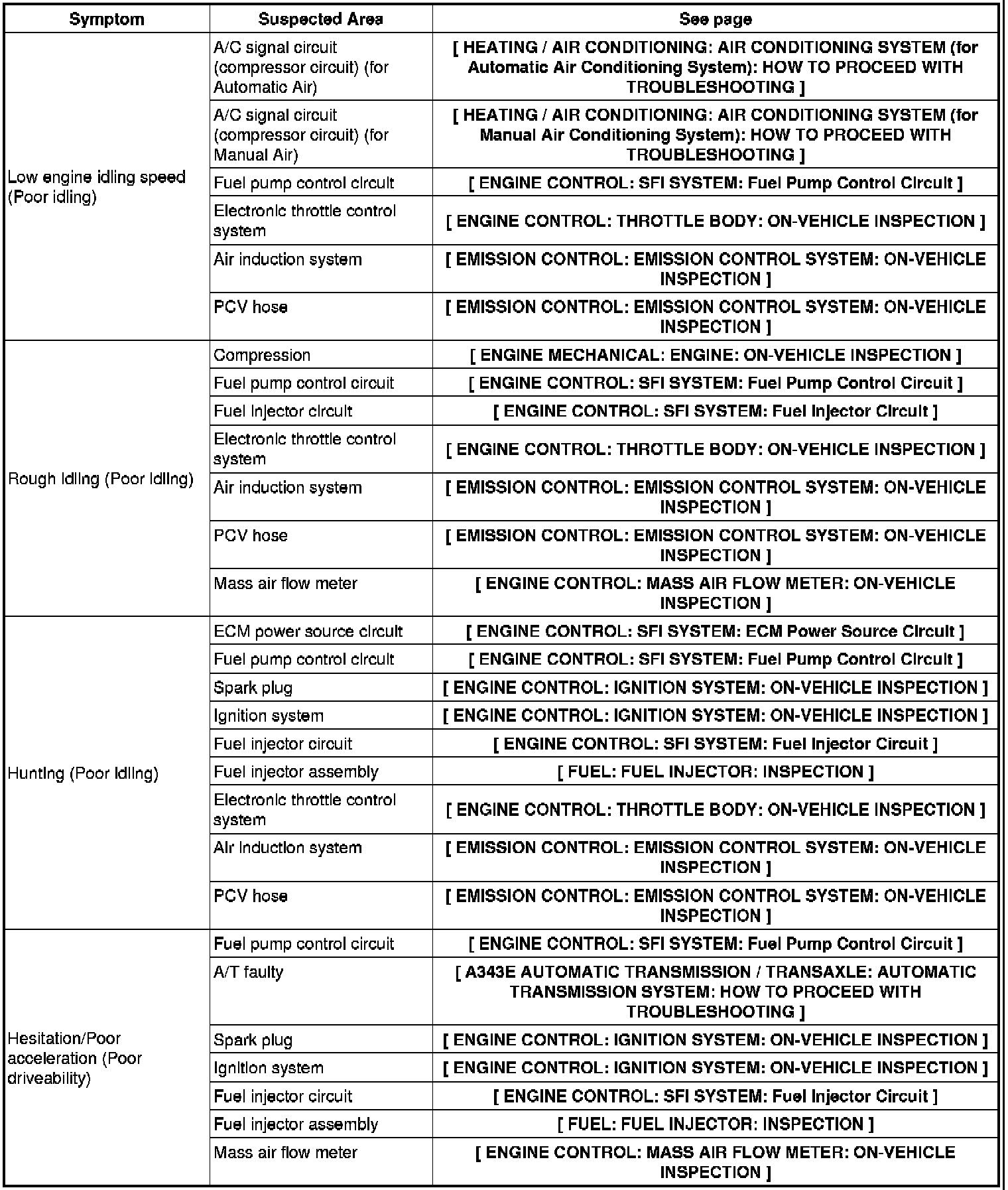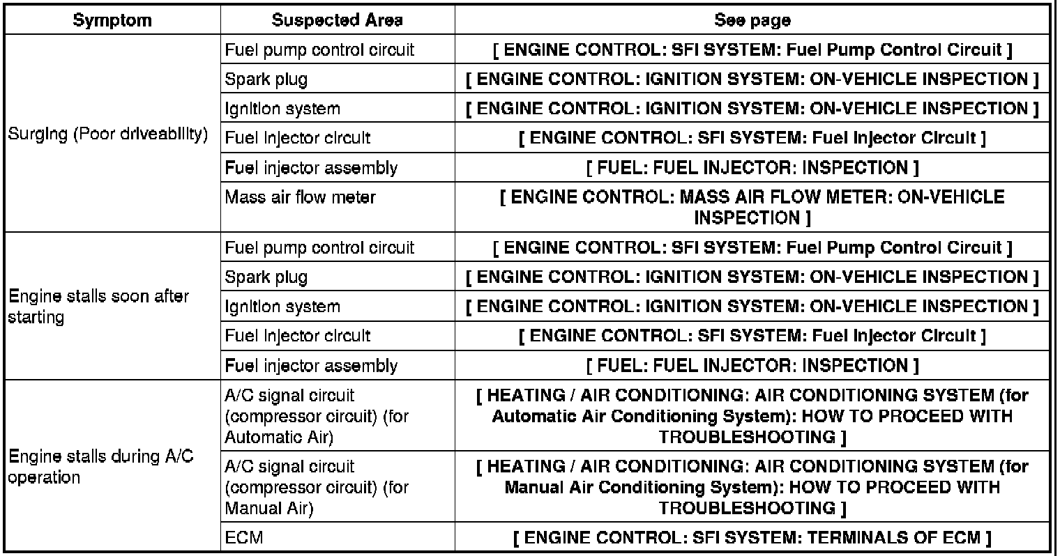 2TR-FE ENGINE CONTROL: SFI SYSTEM: PROBLEM SYMPTOMS TABLE