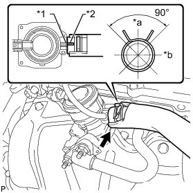(a) Connect the No. 1 air injection system hose so that its paint mark aligns with the rib of the air switching valve as shown in the illustration.