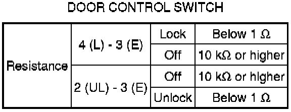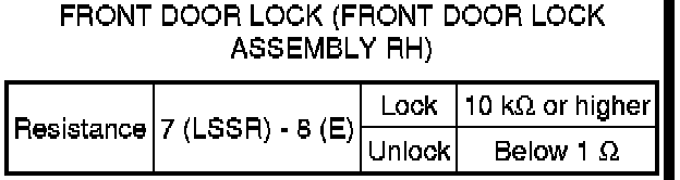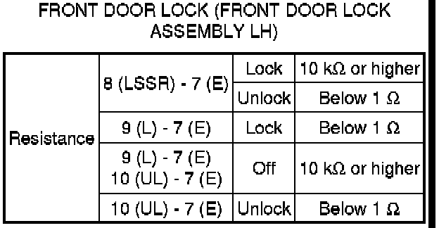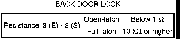 SPECIFICATIONS: DOOR LOCK: SERVICE DATA