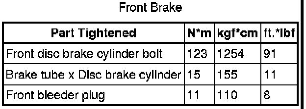 SPECIFICATIONS: BRAKE (FRONT): TORQUE SPECIFICATIONS