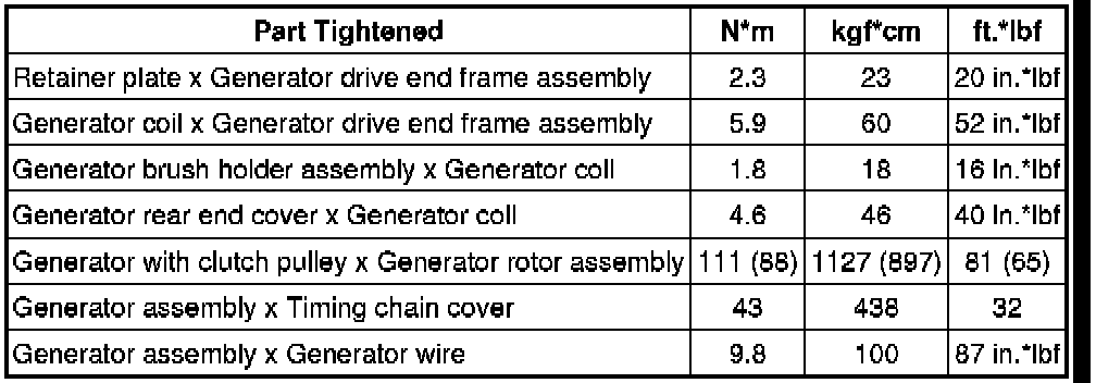 SPECIFICATIONS: 2TR-FE BATTERY / CHARGING: TORQUE SPECIFICATIONS