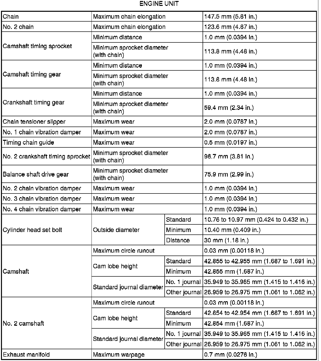 SPECIFICATIONS: 2TR-FE ENGINE MECHANICAL: SERVICE DATA