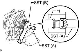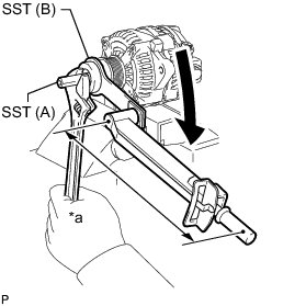 (c) Install SST (A) and SST (B) to the generator with clutch pulley as shown in the illustration.