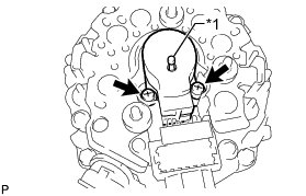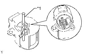 (a) While pushing the 2 brushes into the generator brush holder, insert a pin with a diameter of 1.0 mm (0.0394 in.) into the generator brush holder hole.
