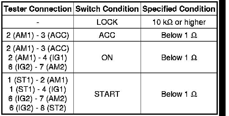 2TR-FE STARTING: IGNITION SWITCH: INSPECTION