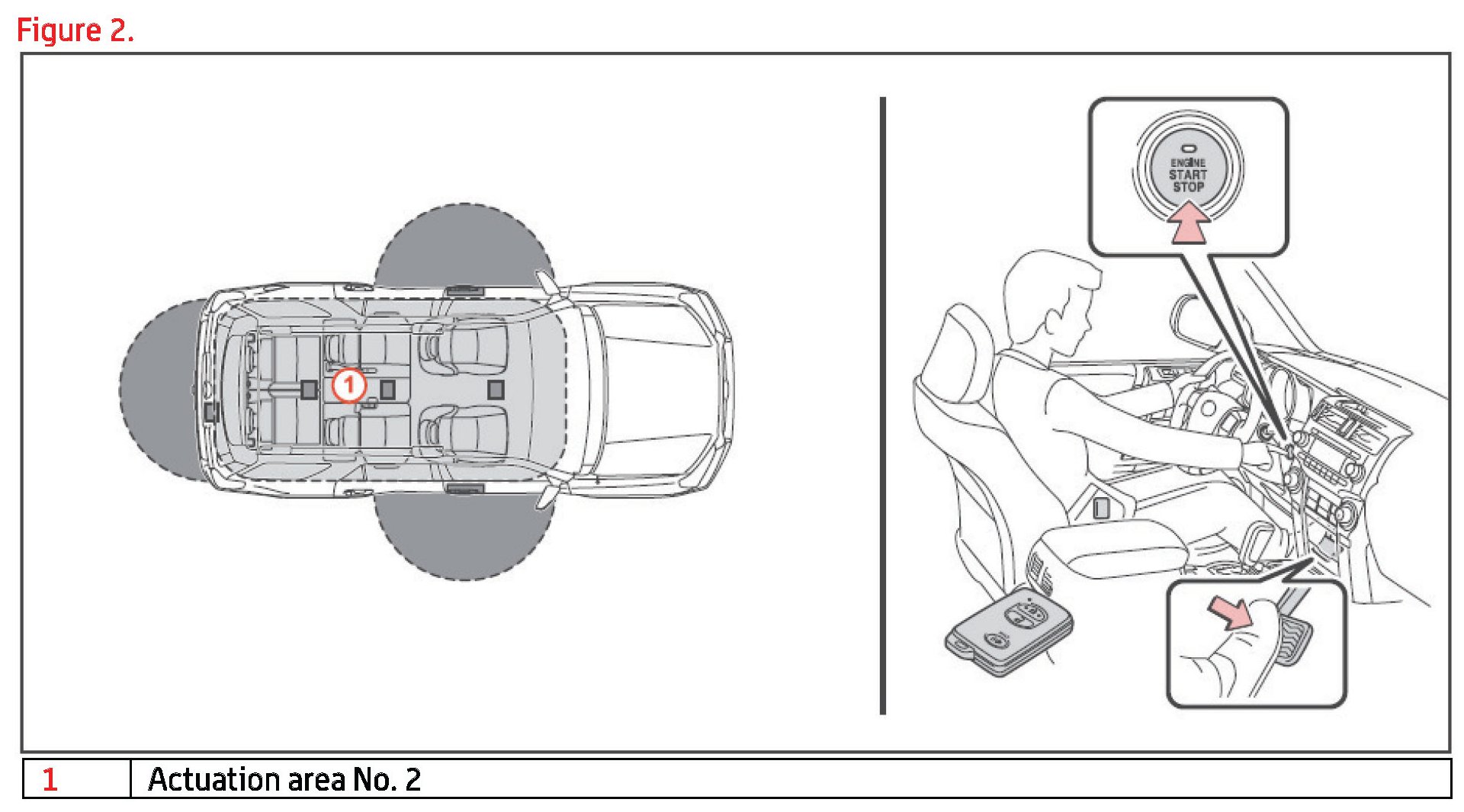 Registered Smart Key MUST be in actuation area No. 2 for this check (see illustrations).