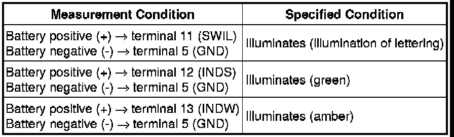 (b) Apply battery voltage to the terminals of the switch and check the illumination condition of the switch.