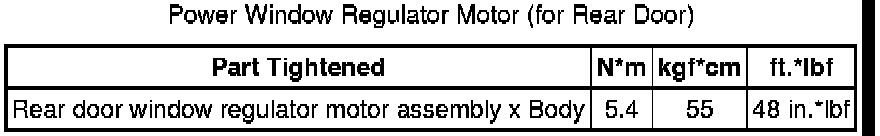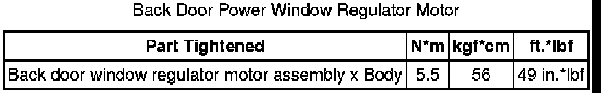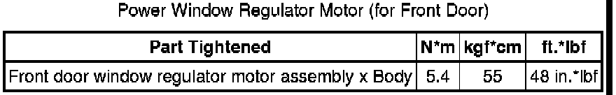 SPECIFICATIONS: WINDOW / GLASS: TORQUE SPECIFICATIONS