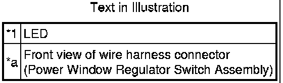 (1) Apply battery voltage to the power window regulator switch and check that the LED illuminates.
