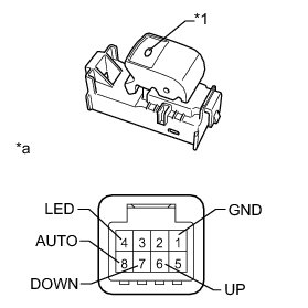 * If the result is not as specified, replace the rear power window regulator switch assembly.