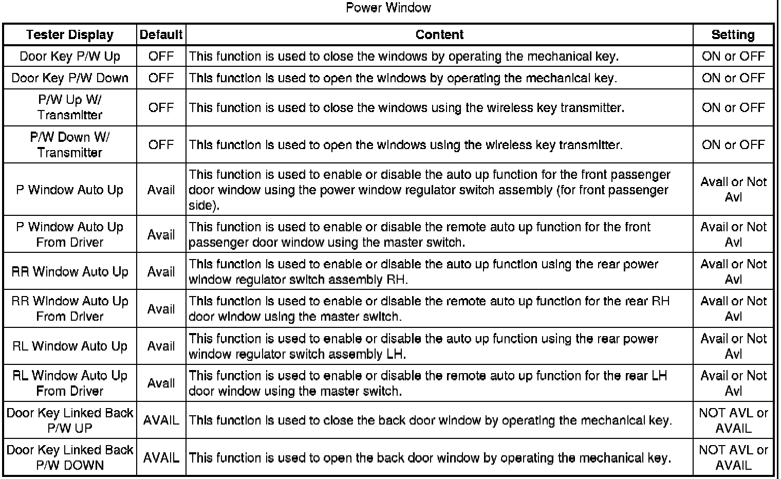 WINDOW / GLASS: POWER WINDOW CONTROL SYSTEM: CUSTOMIZE PARAMETERS