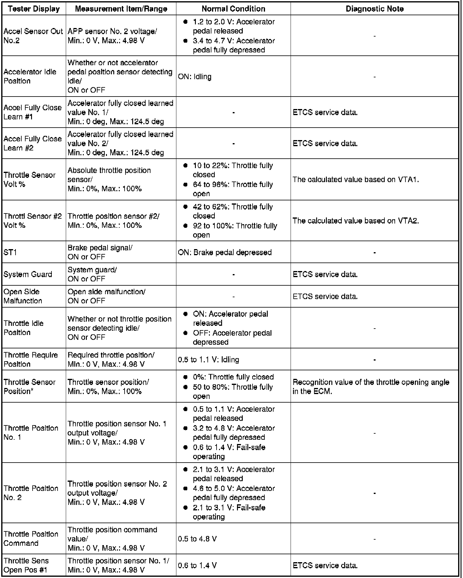(h) *: This excludes the throttle valve opening percentage due to Idle Speed Control (ISC).