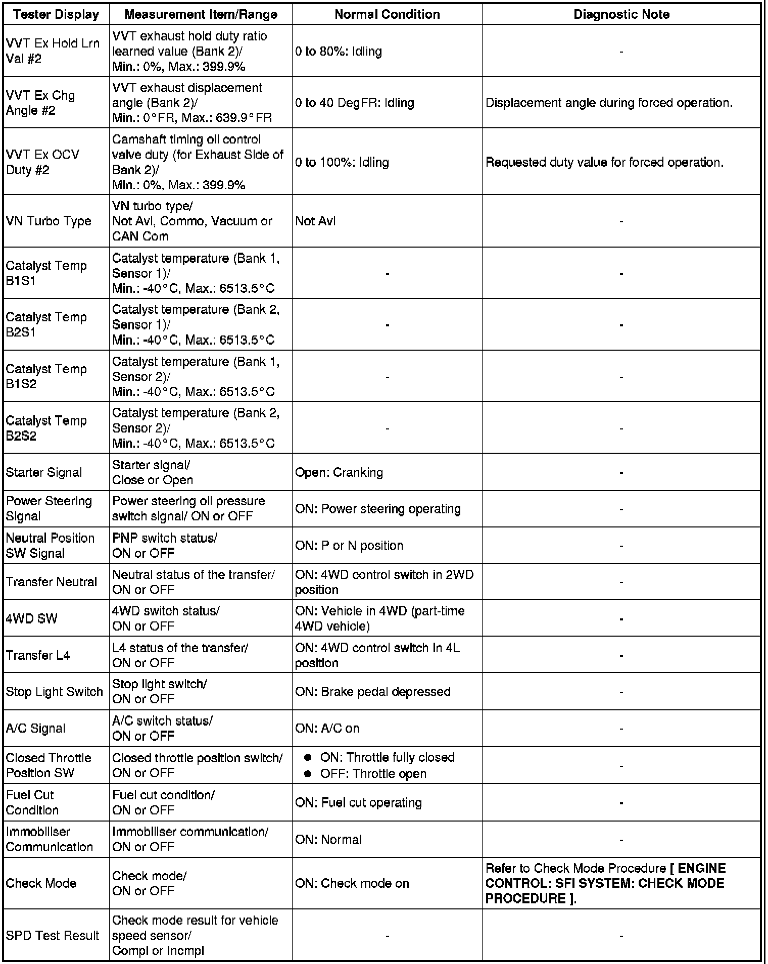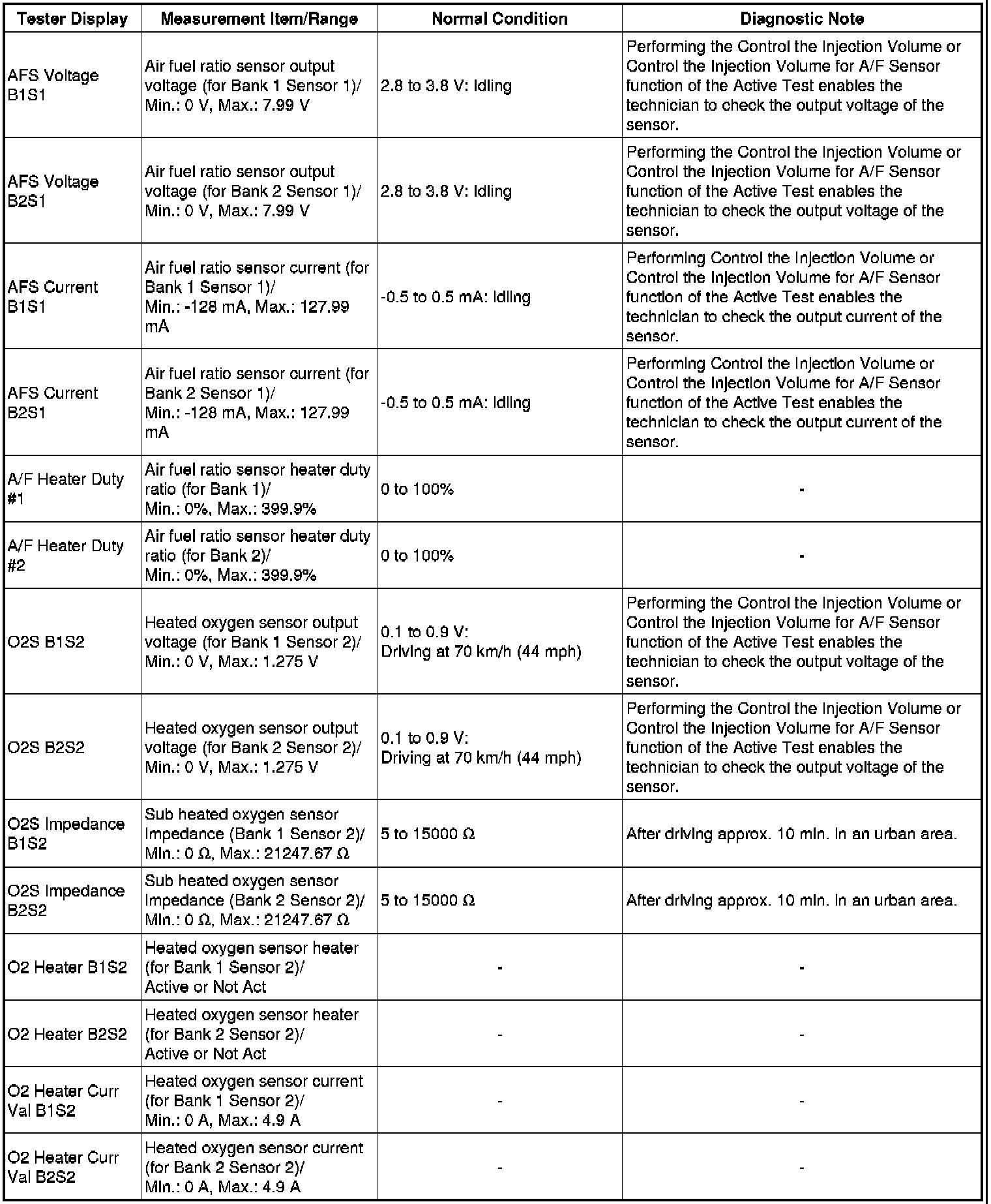 Normal Condition: If no conditions are specifically stated for "idling", the shift lever should be in N or P, the A/C switch should be off and all accessory switches should be off.