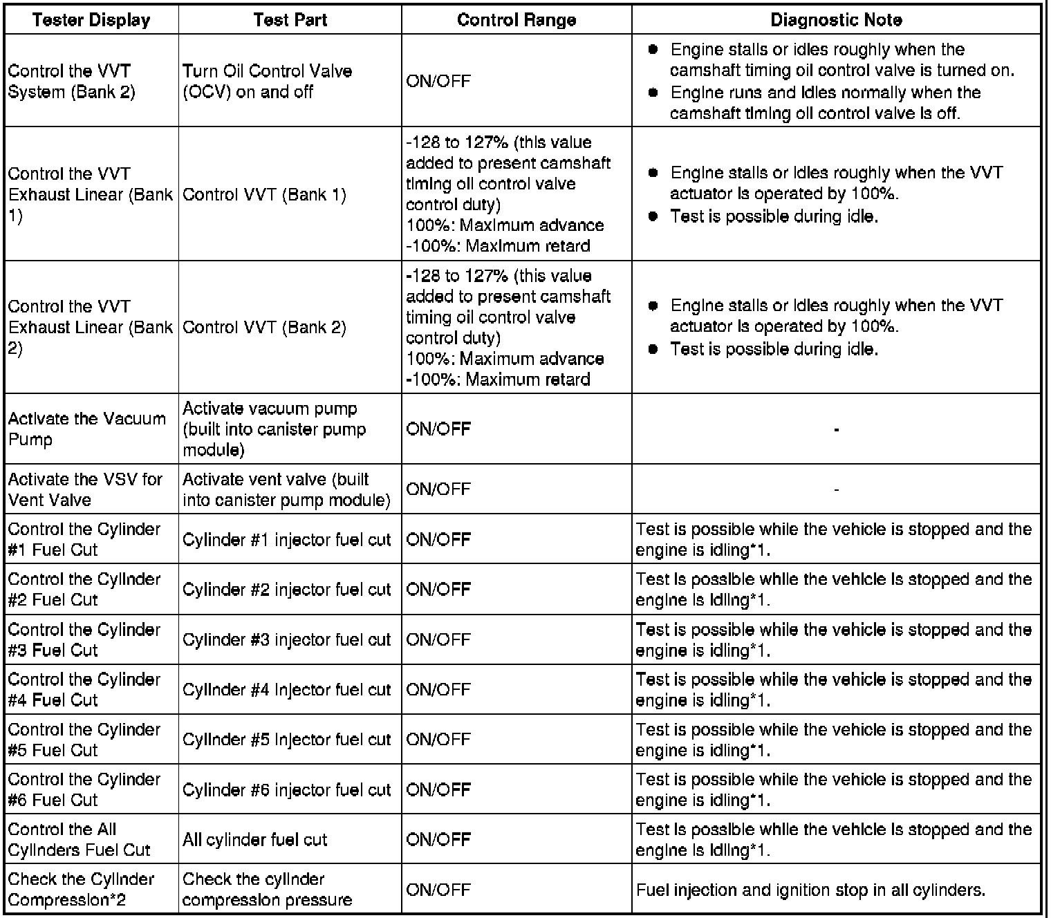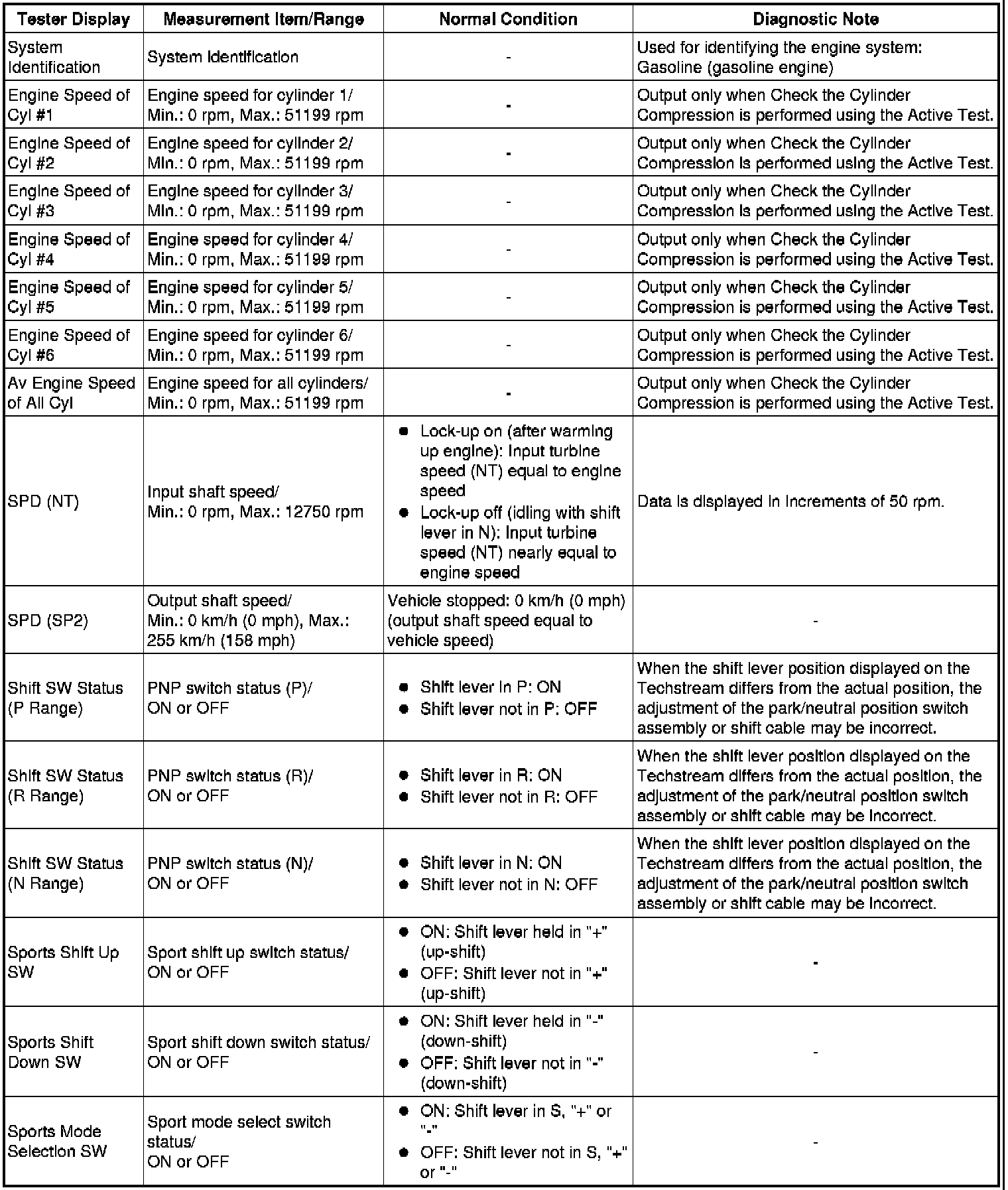 *2: When cranking the engine, the Active Test measures the speed of each cylinder.
