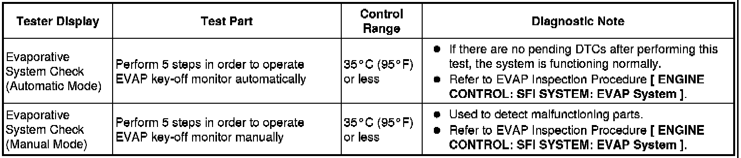 (e) Perform the system check by referring to the table below.