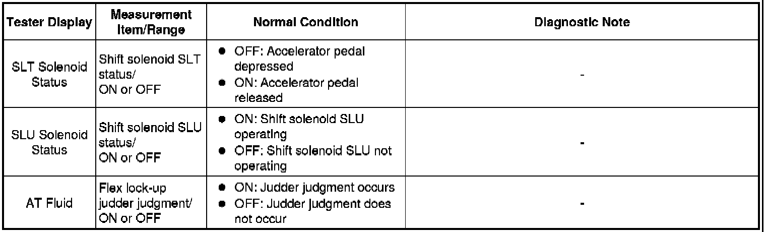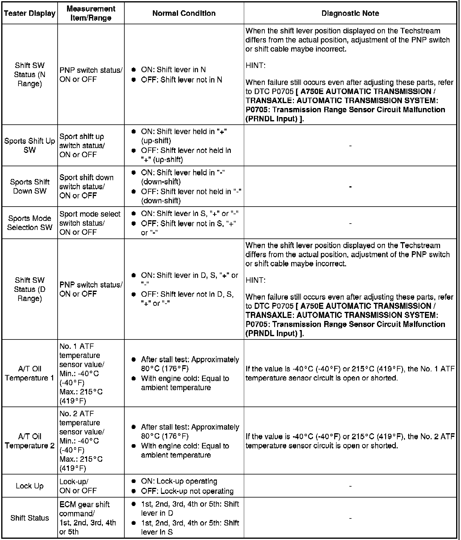 A750E AUTOMATIC TRANSMISSION / TRANSAXLE: AUTOMATIC TRANSMISSION SYSTEM: DATA LIST / ACTIVE TEST