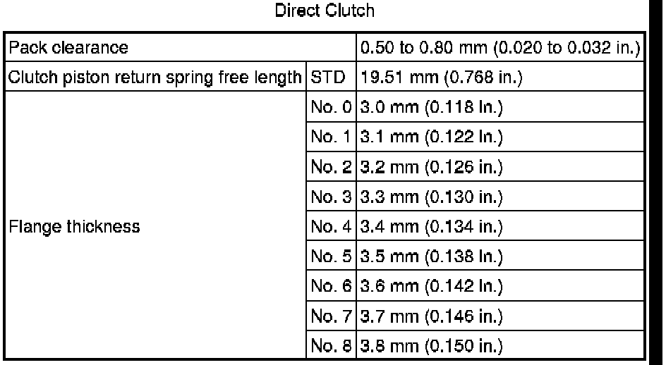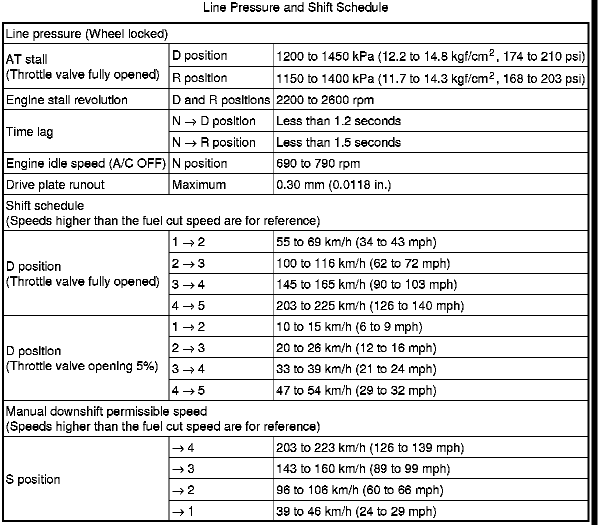 SPECIFICATIONS: A750E AUTOMATIC TRANSMISSION / TRANSAXLE: SERVICE DATA