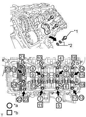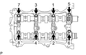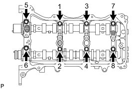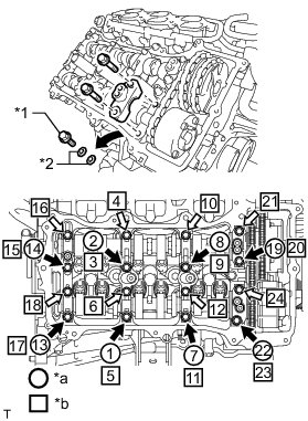 Immediately after removing VVT bolt kit in the location for a bearing cap, install the bearing cap with the bolts in the order shown in the illustration.