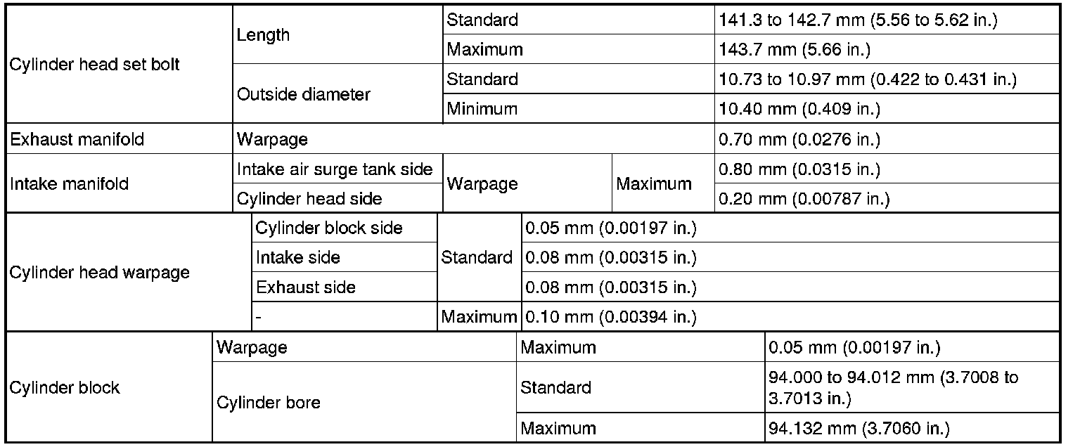 Cylinder Head Specifications