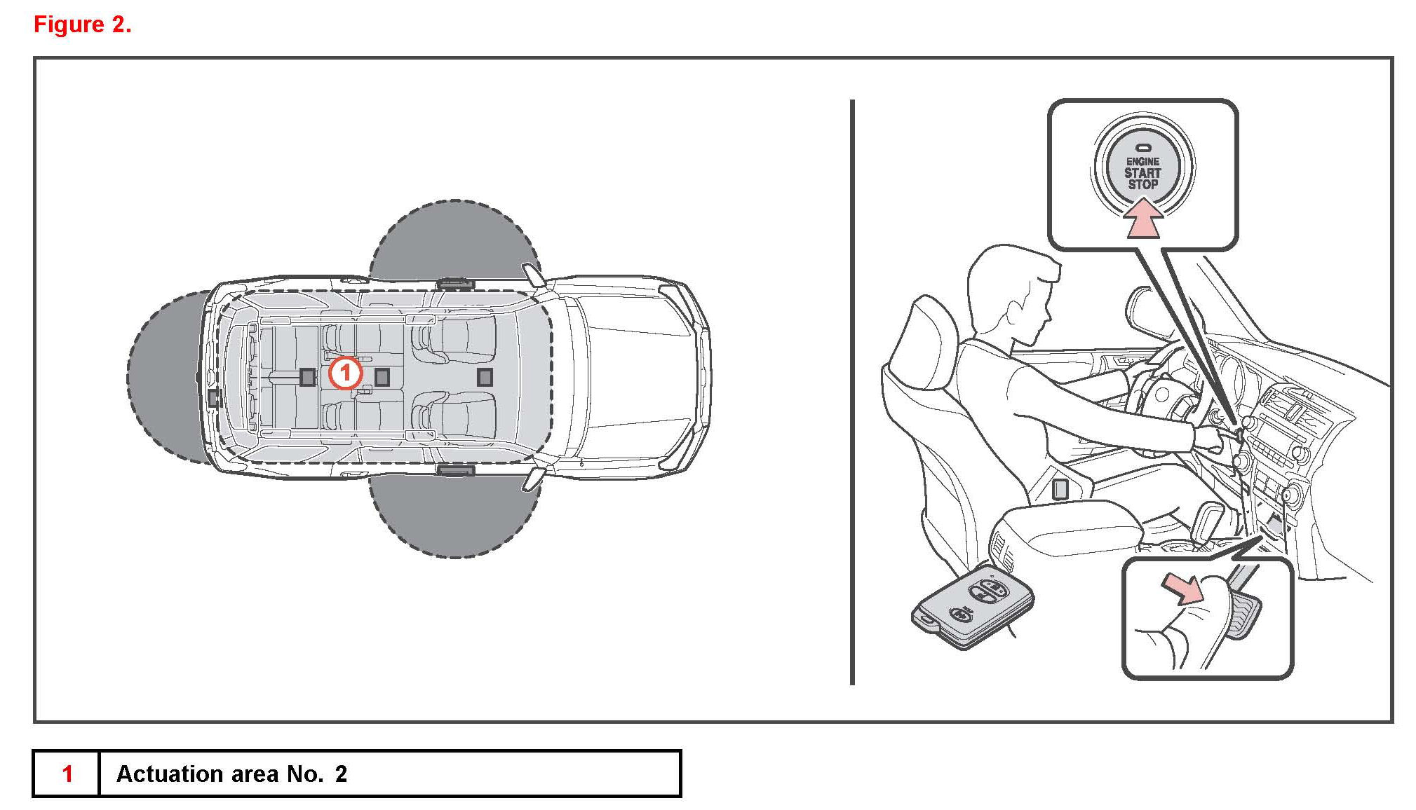 Registered Smart Key must be in actuation area No.2 for this check (see illustrations).