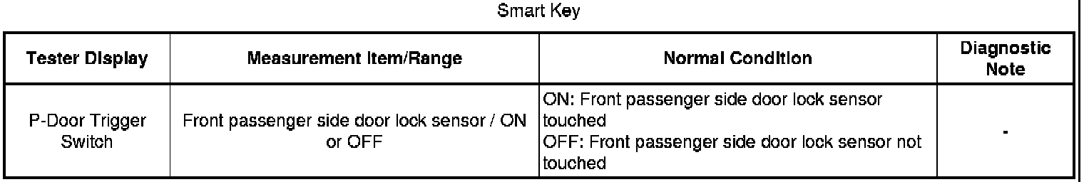 THEFT DETERRENT / KEYLESS ENTRY: SMART KEY SYSTEM (for Entry Function): Front Passenger Side Door Entry Lock Function does not Operate