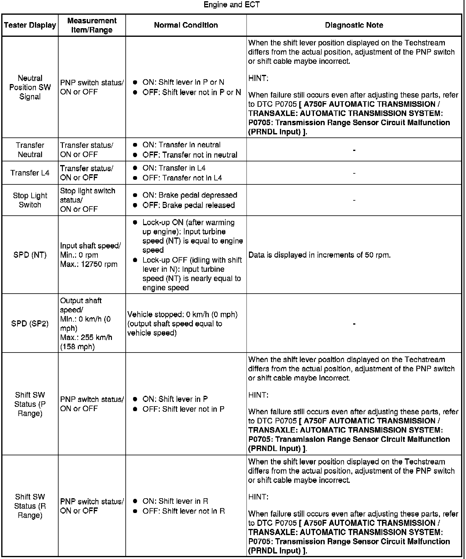 A750F AUTOMATIC TRANSMISSION / TRANSAXLE: AUTOMATIC TRANSMISSION SYSTEM: DATA LIST / ACTIVE TEST