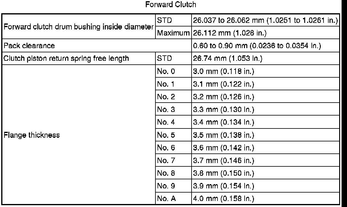 SPECIFICATIONS: A750F AUTOMATIC TRANSMISSION / TRANSAXLE: SERVICE DATA