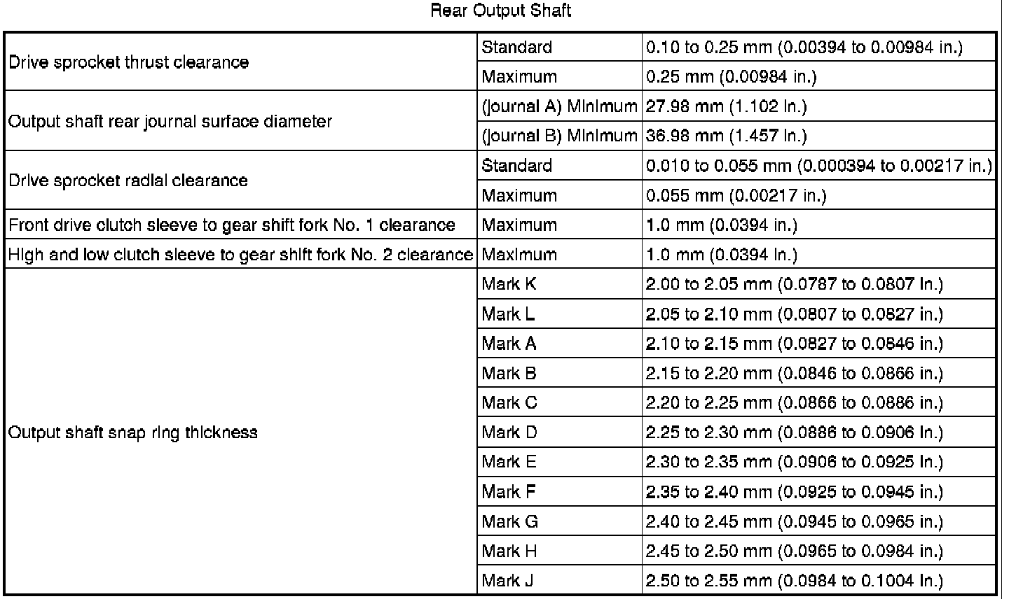 SPECIFICATIONS: VF2A TRANSFER / 4WD / AWD: SERVICE DATA