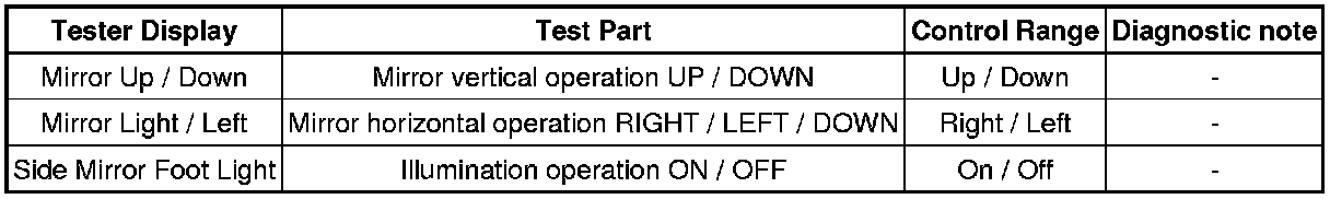 MIRROR: POWER MIRROR CONTROL SYSTEM (w/ Memory): DATA LIST / ACTIVE TEST