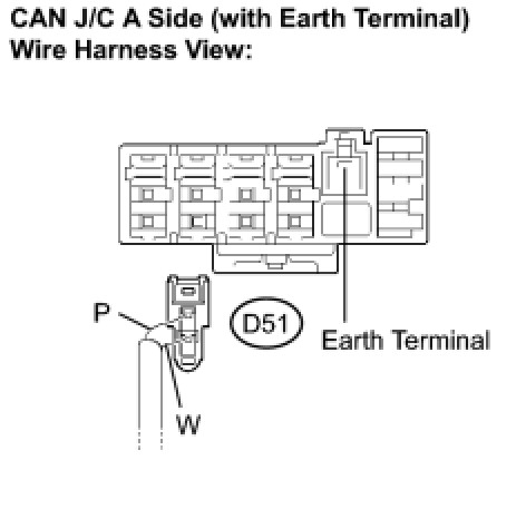 (a) Reconnect the DLC3 sub bus line connector (D51) to the CAN J/C A side (with earth terminal).