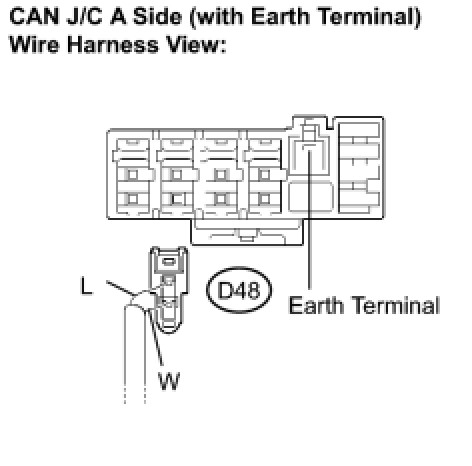 (a) Reconnect the steering angle sensor sub bus line connector (D48) to the CAN J/C A side (with earth terminal).