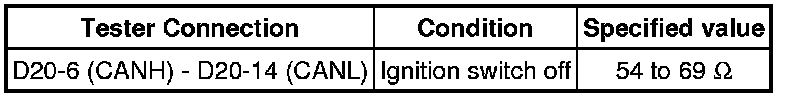 There may be a short circuit between the CAN bus lines when the resistance between terminals 6 (CANH) and 14 (CANL) of the DLC3 is below 54 Ohms.
