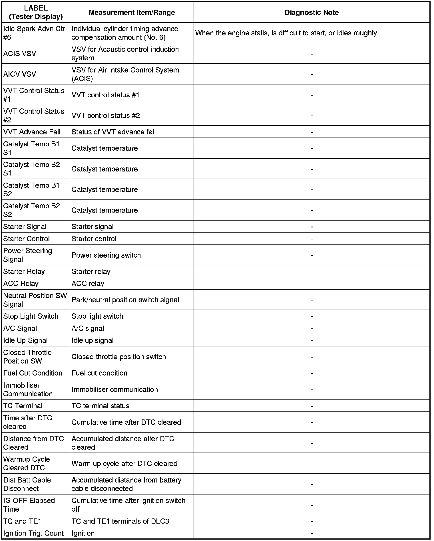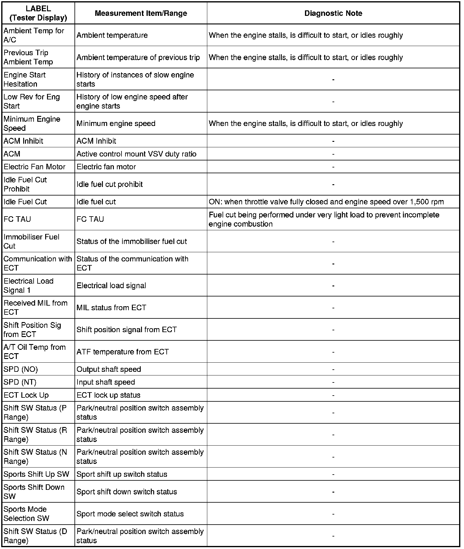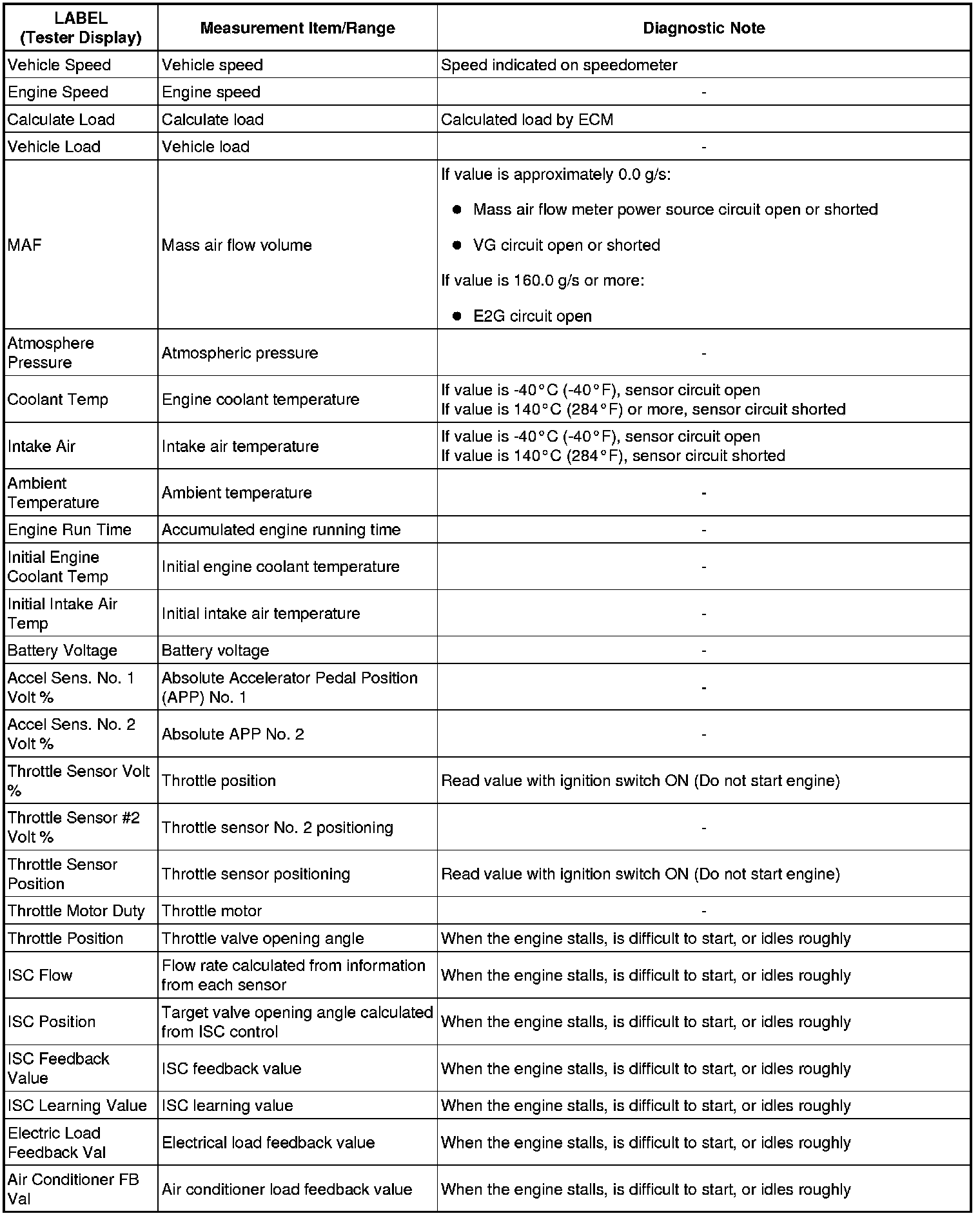 2GR-FE ENGINE CONTROL SYSTEM: SFI SYSTEM: FREEZE FRAME DATA