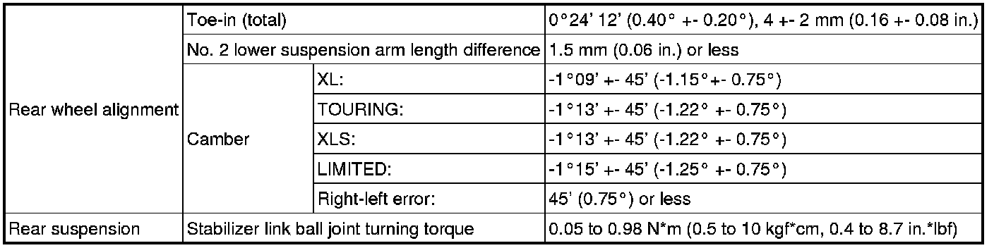 SERVICE SPECIFICATIONS: SUSPENSION: SERVICE DATA