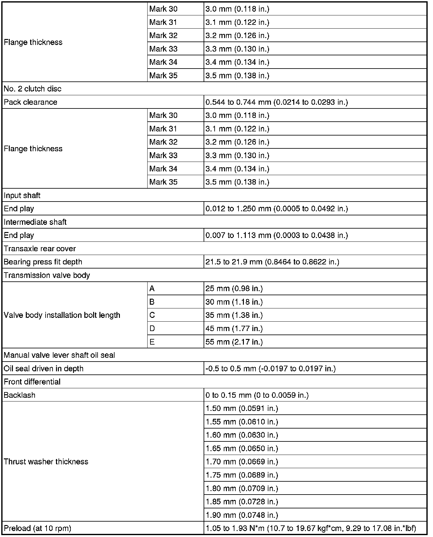 SERVICE SPECIFICATIONS: U660E AUTOMATIC TRANSAXLE: SERVICE DATA