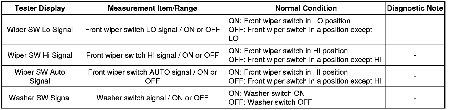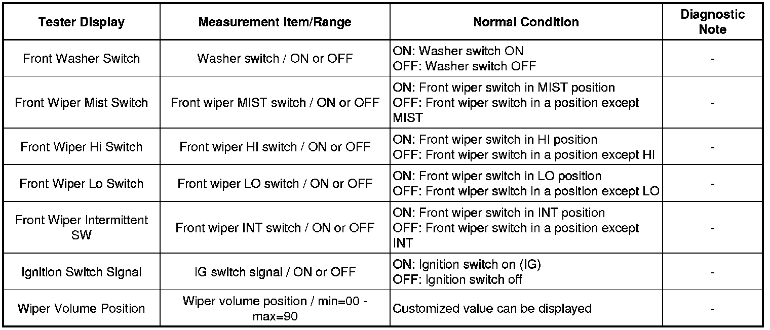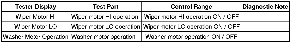 WIPER AND WASHER: WIPER AND WASHER SYSTEM: DATA LIST / ACTIVE TEST
