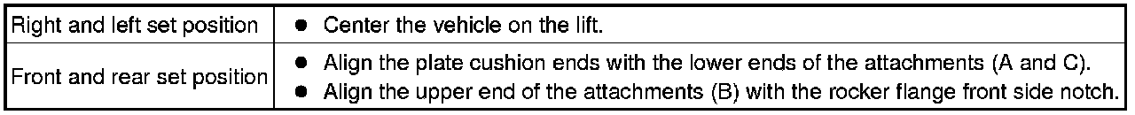 (c) Be sure to set the vehicle to the specified position described in the following chart and shown in the following illustration.