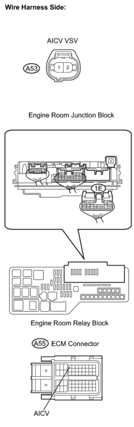 (a) Check the wire harness between the VSV for AICV connector and the ECM connector.