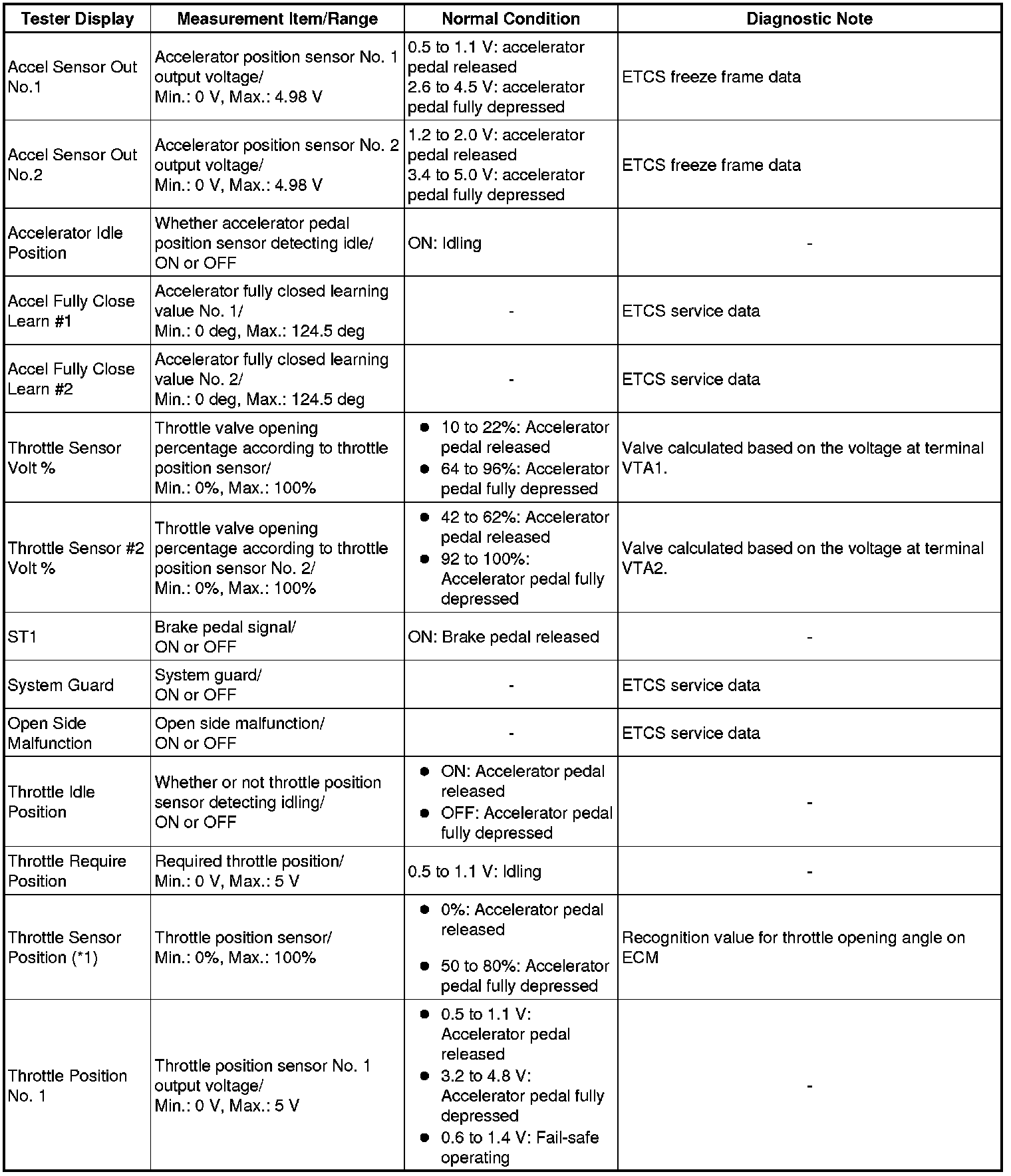 * *1: Excluding throttle valve opening percentage due to Idle Speed Control (ISC).