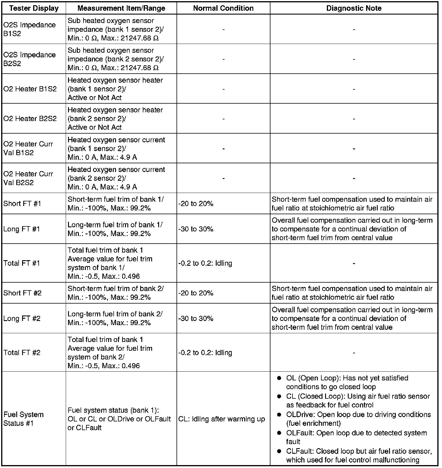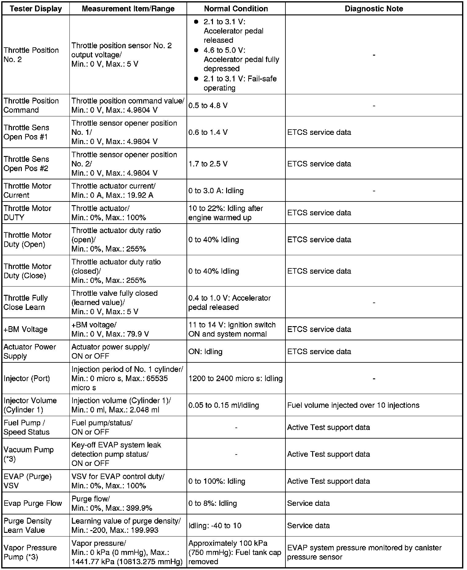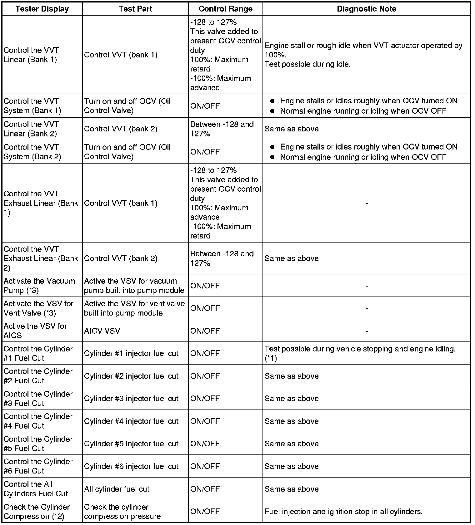 * *2: Data List values are displayed only when performing the following Active Test: Control the VVT Linear (Bank 1 or Bank 2) or Control the VVT Exhaust Linear (Bank 1 or Bank 2). For other Active Test, the Data List value will be 0.