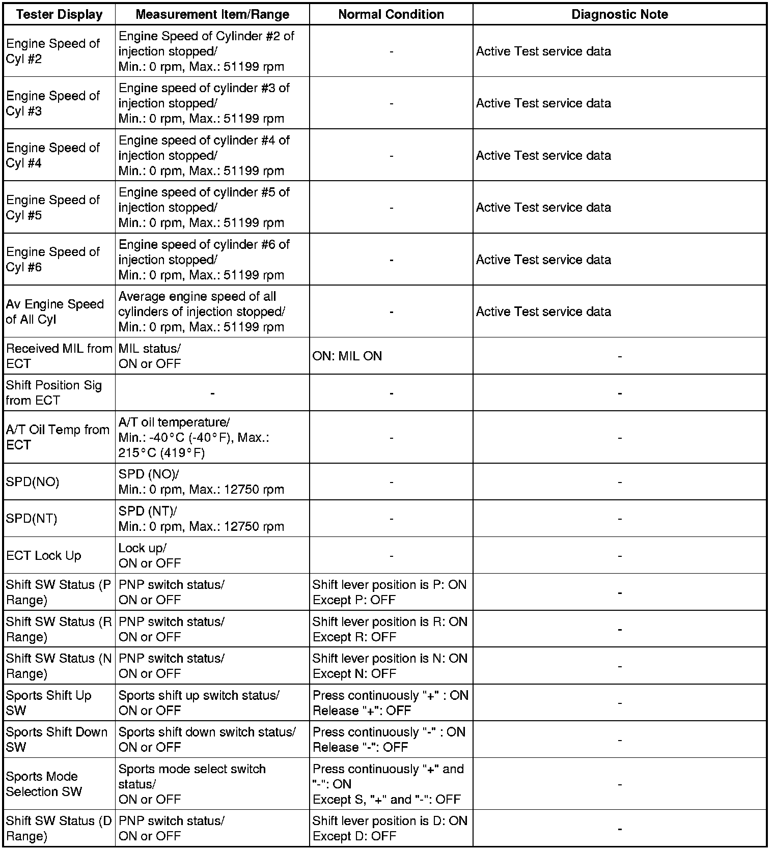 *2: When performing the Active Test item "Check the Cylinder Compression" and then cranking the engine, the ECM stops the fuel injection and ignition, and measures the engine speed for each cylinder.