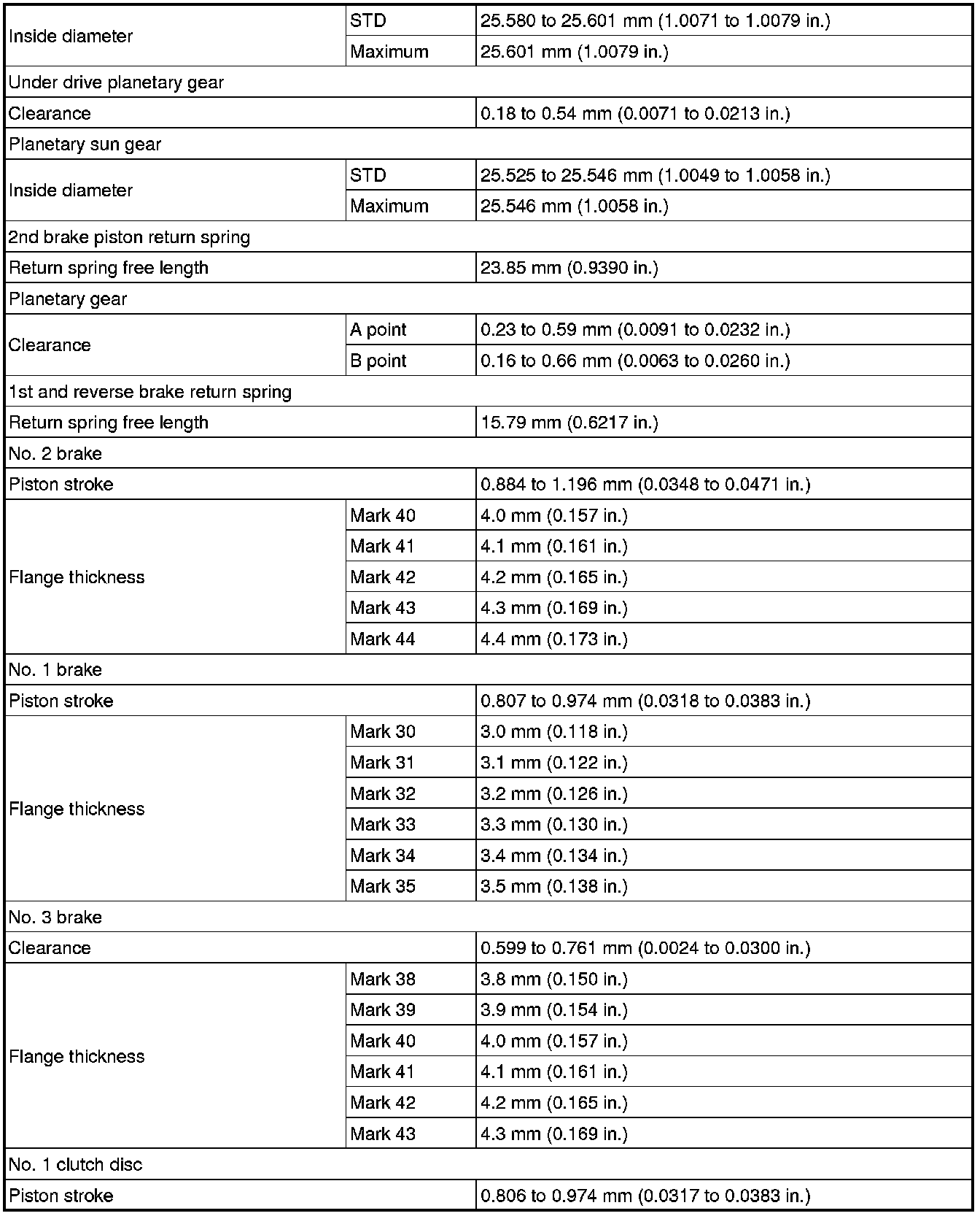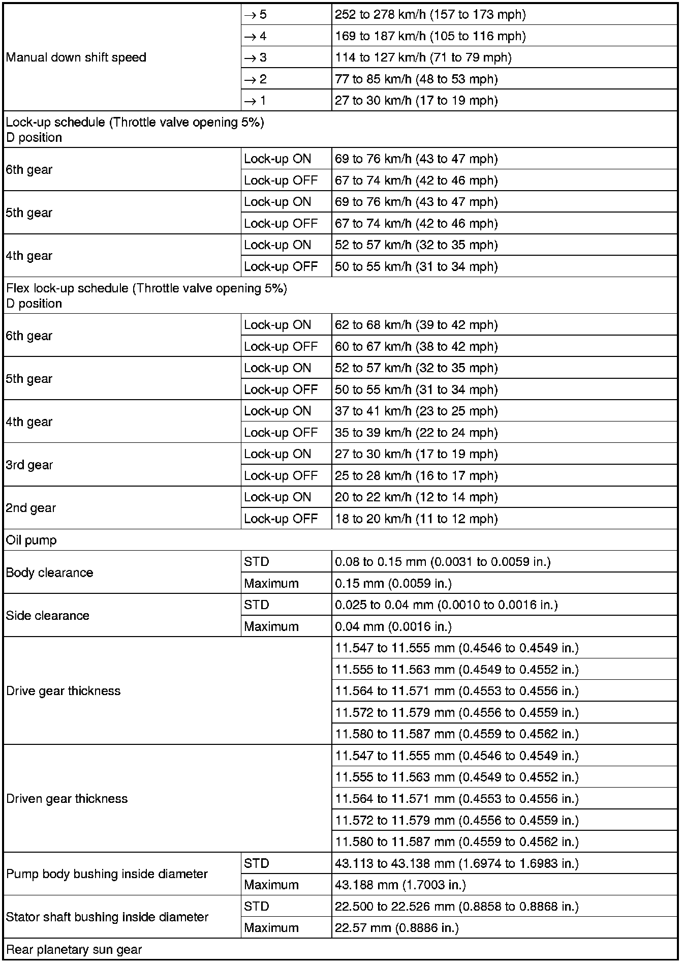 SERVICE SPECIFICATIONS: U660E AUTOMATIC TRANSAXLE: SERVICE DATA