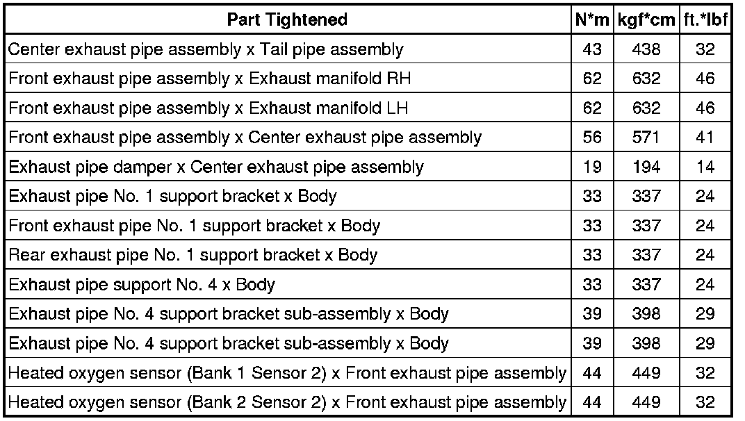 SERVICE SPECIFICATIONS: 2GR-FE EXHAUST: TORQUE SPECIFICATIONS
