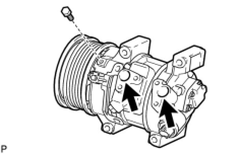 (b) Apply sufficient compressor oil to a new O-ring and the fitting surface of the compressor assembly with pulley.