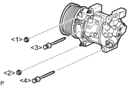(d) Install the suction hose sub-assembly onto the compressor assembly with pulley with the bolt.