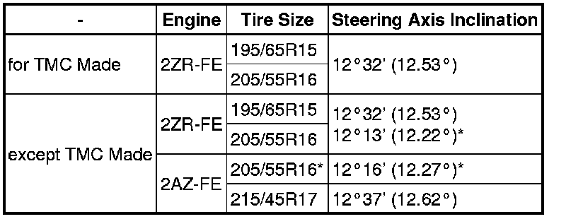 * Before inspecting the wheel alignment, adjust the vehicle height to the specified value.