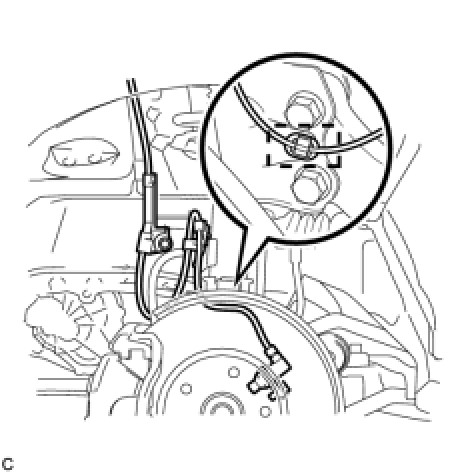 (j) Install the front speed sensor and the front flexible hose to the front shock absorber with the bolt.
