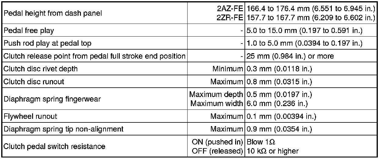 SPECIFICATIONS: CLUTCH: SERVICE DATA