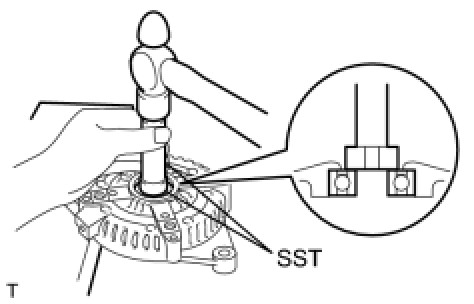 (b) Using SST and a hammer, tap out the drive end frame bearing from the drive end frame.