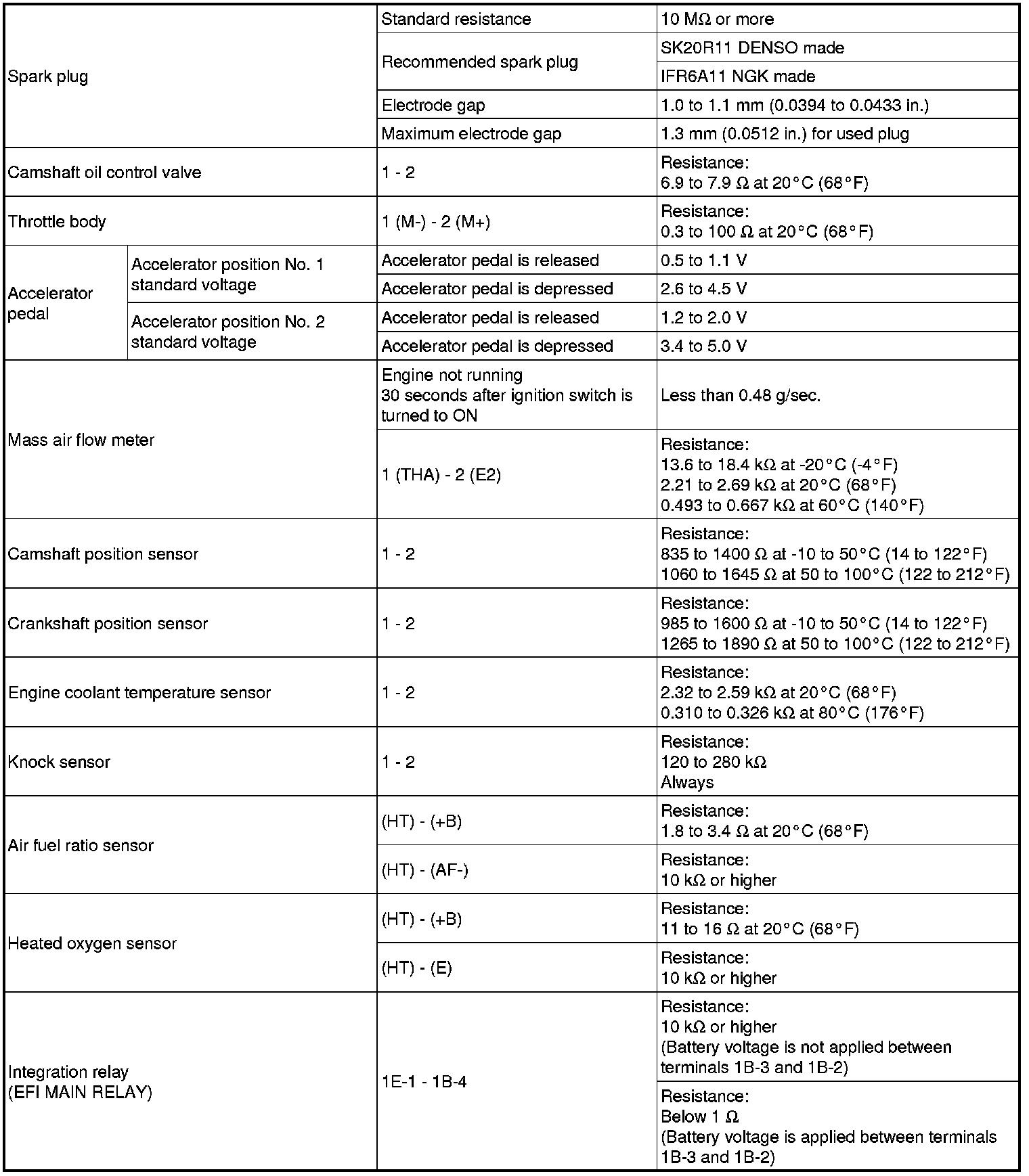 SPECIFICATIONS: 2AZ-FE ENGINE CONTROL: SERVICE DATA